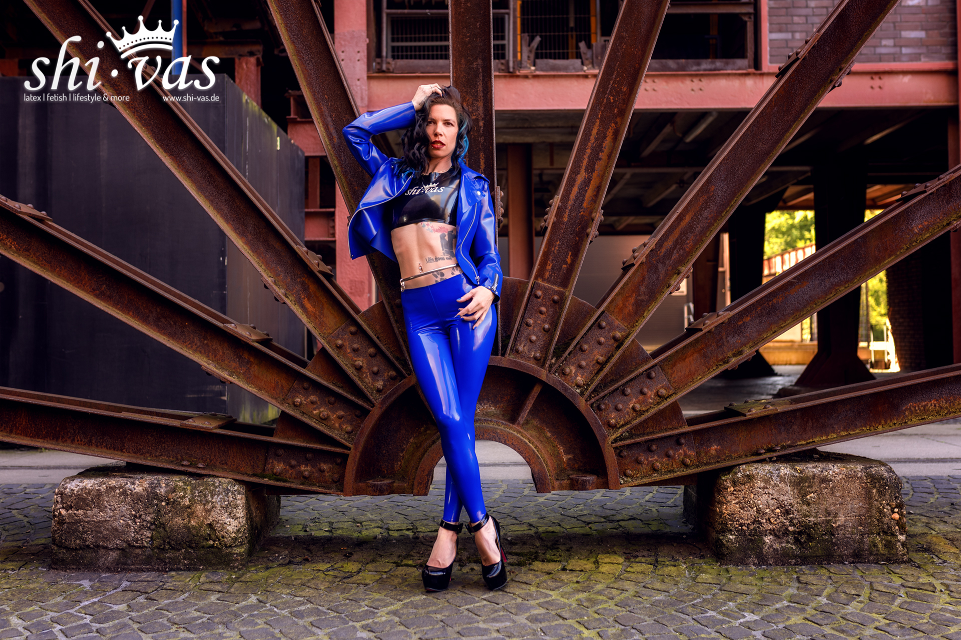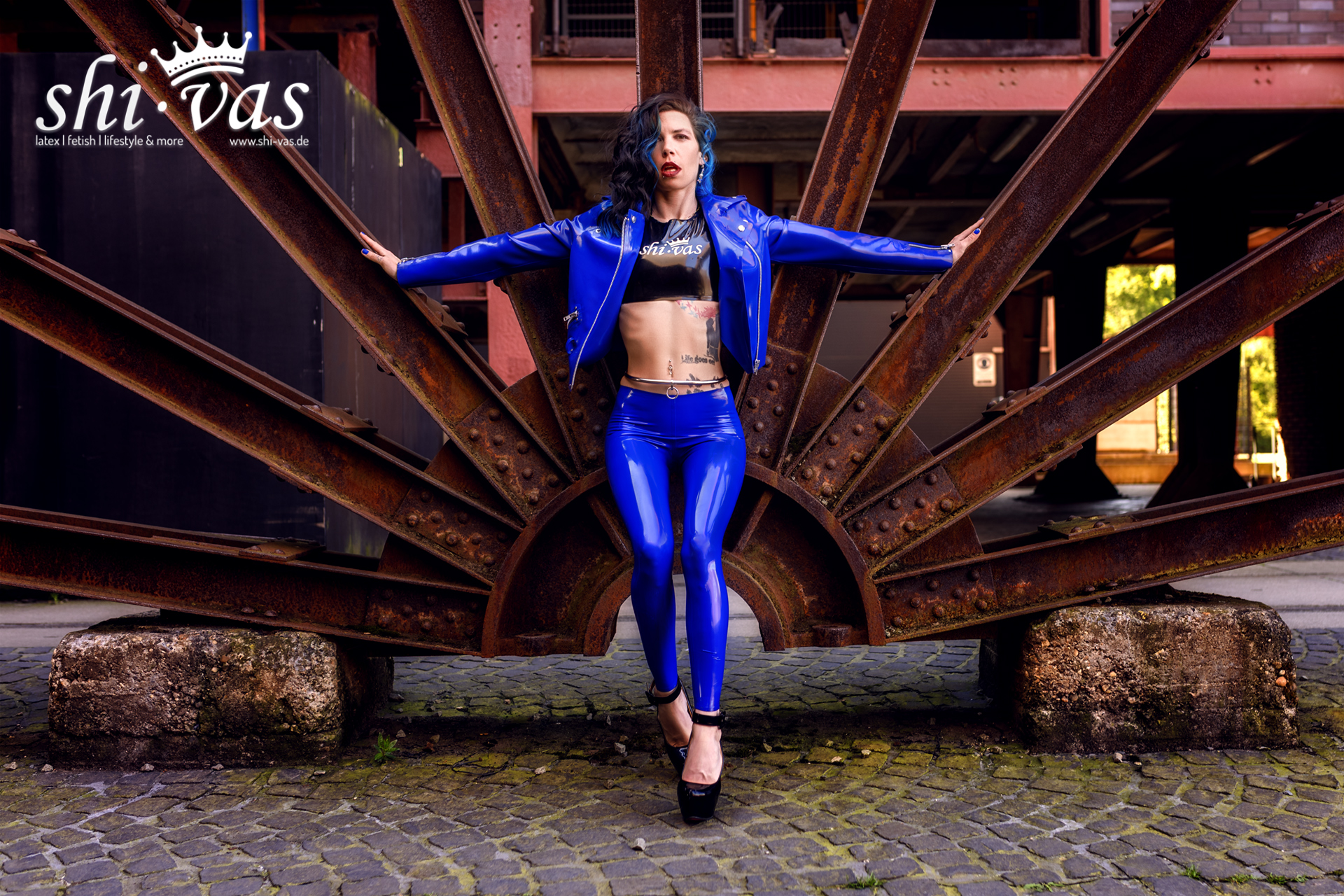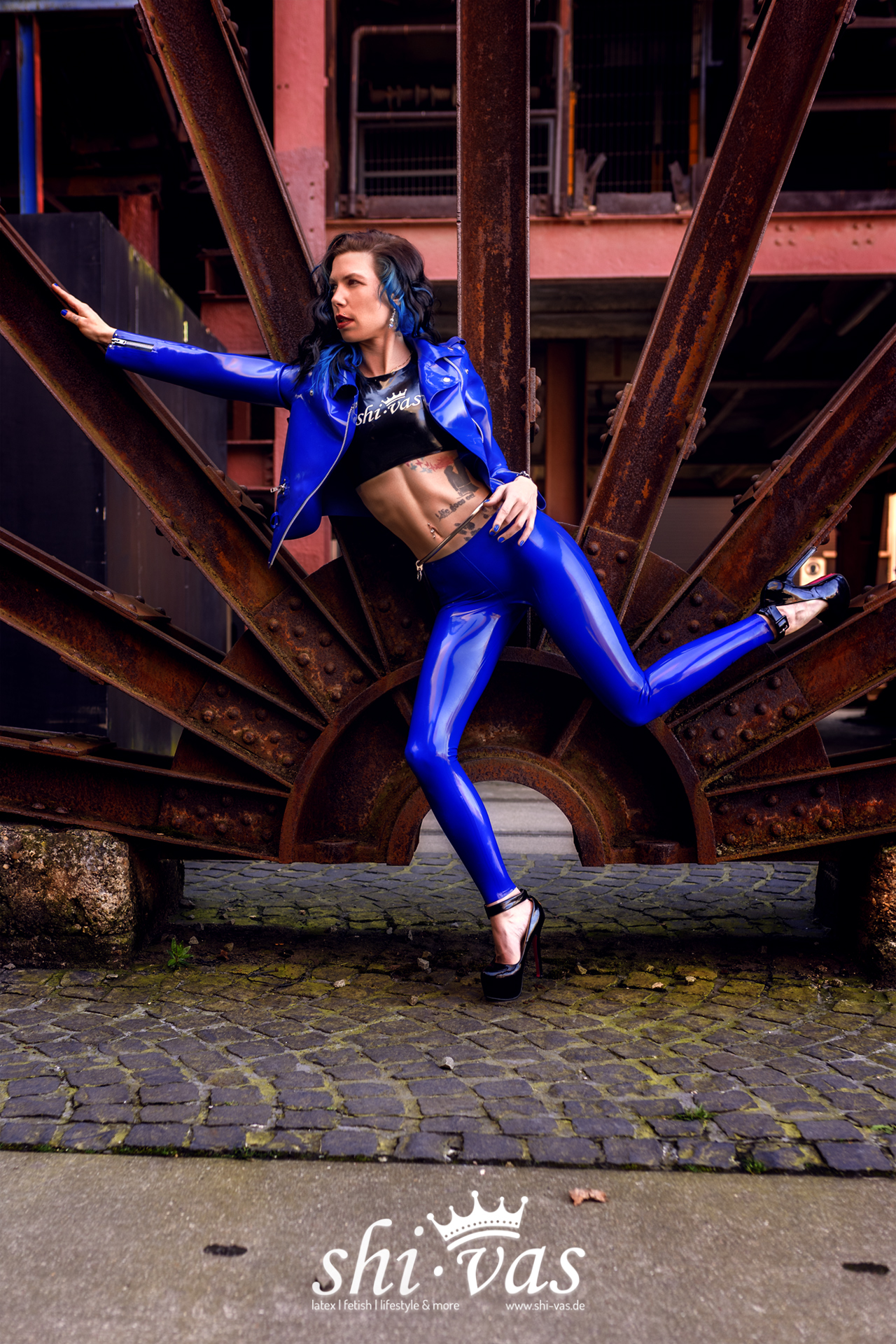 Ich stehe zwischen Stahlträgern, Rost, Geschichte. Schweres Eisen, das Jahrzehnte gearbeitet hat. Und mittendrin ich. In Blau. In Latex. Auf der Zeche Zollverein. 🖤🏭