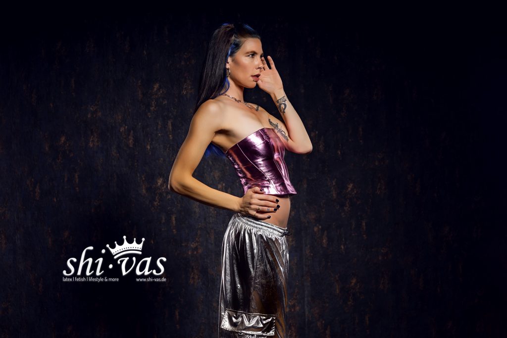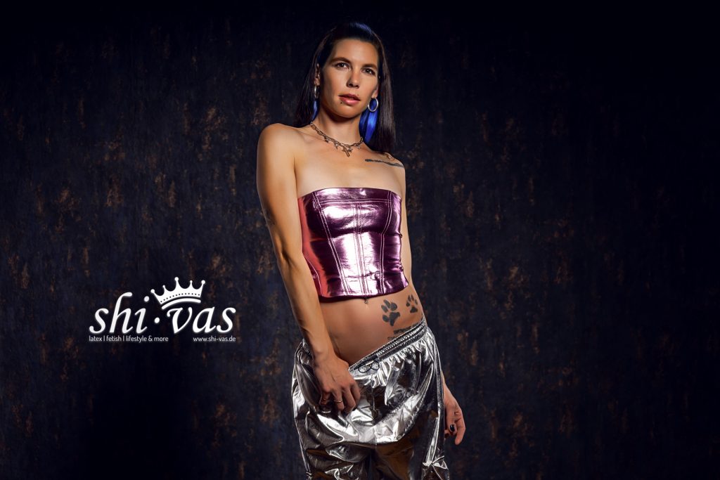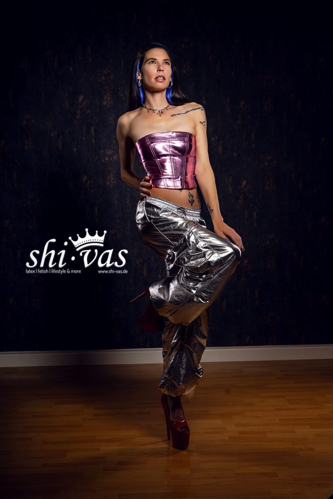 Eigentlich mag ich ja eher enge Jeans – aber diese lockere, silberne Hose von SHEIN Germany hat es mir vom ersten Moment an angetan! Ich liebe den silbrigen Glanz – das ist mal wieder genau das, was ich gerne trage: etwas, das absolut auffällt! Und dazu das pink-farbene, glänzende Top von Bershka – perfekte Kombi, oder? Viel Haut, aber doch nicht zu aufdringlich. Ich mag das Outfit einfach! … und die Heels von Pleaser Shoes passen ebenfalls perfekt zum Outfit! ❤️