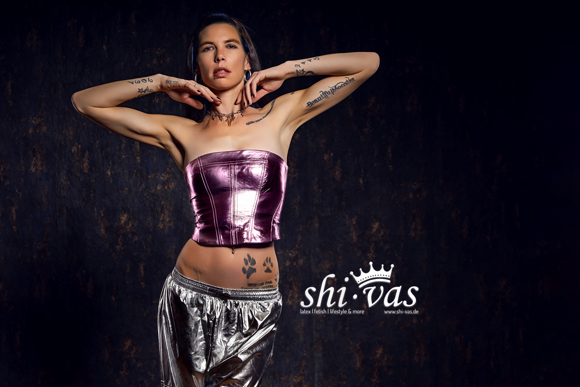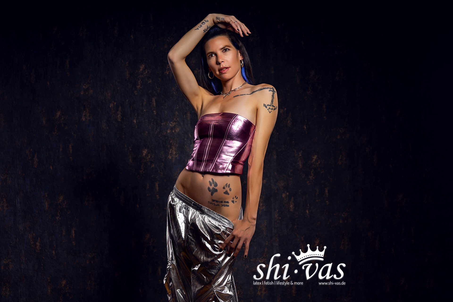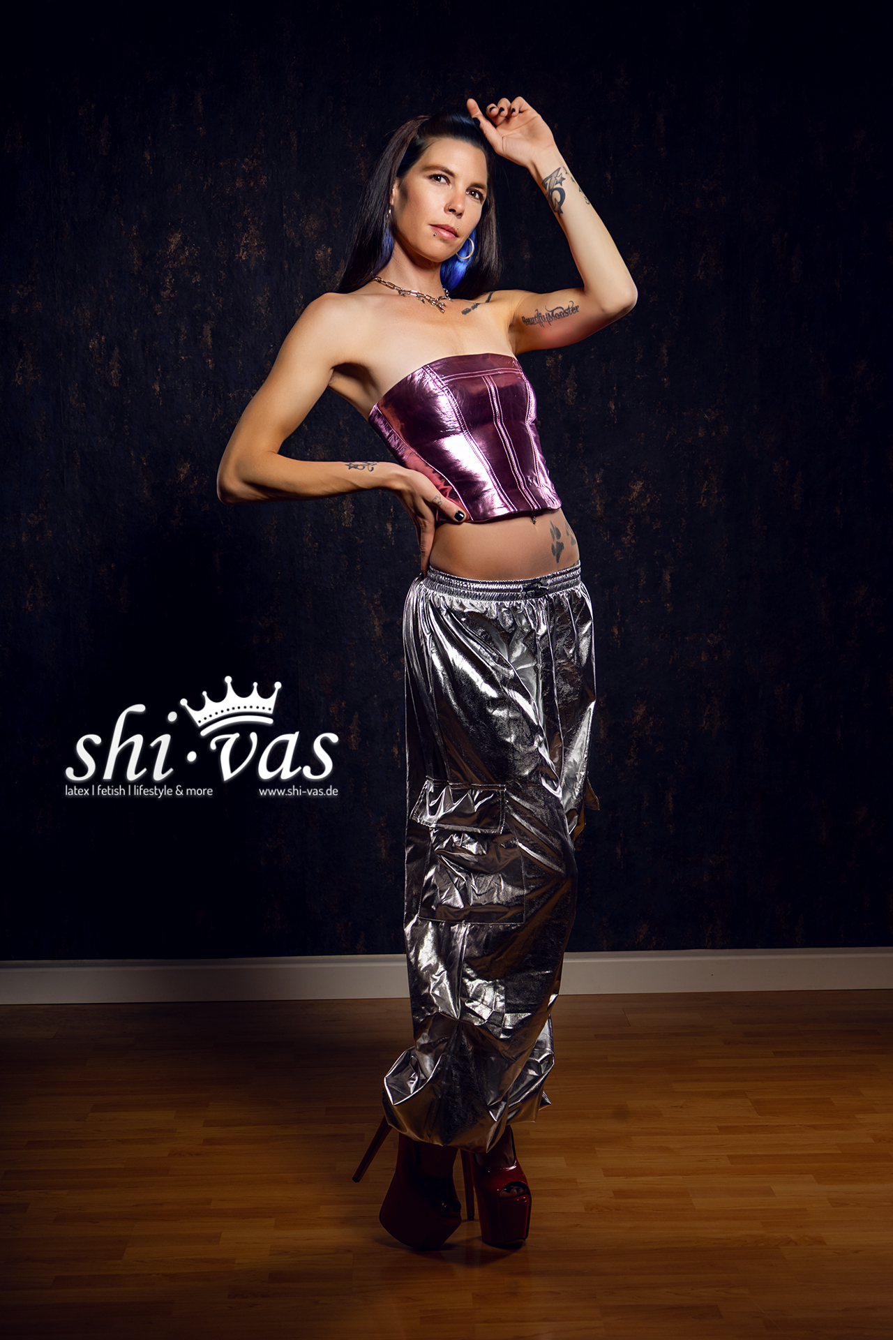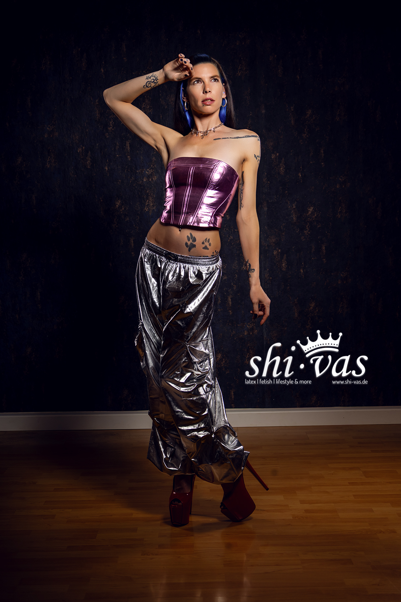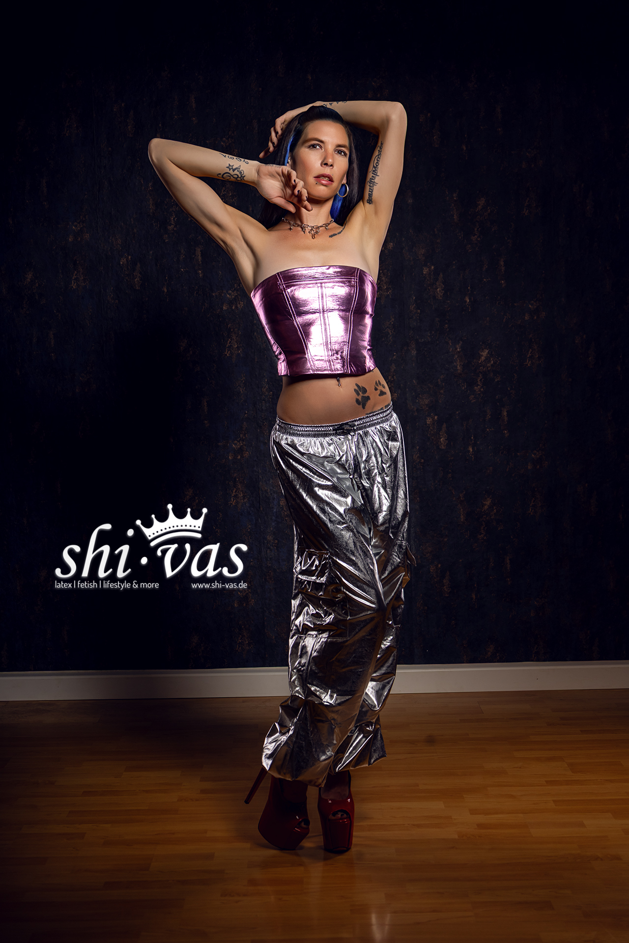 Eigentlich mag ich ja eher enge Jeans – aber diese lockere, silberne Hose von SHEIN Germany hat es mir vom ersten Moment an angetan! Ich liebe den silbrigen Glanz – das ist mal wieder genau das, was ich gerne trage: etwas, das absolut auffällt! Und dazu das pink-farbene, glänzende Top von Bershka – perfekte Kombi, oder? Viel Haut, aber doch nicht zu aufdringlich. Ich mag das Outfit einfach! … und die Heels von Pleaser Shoes passen ebenfalls perfekt zum Outfit! ❤️