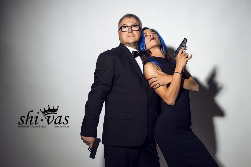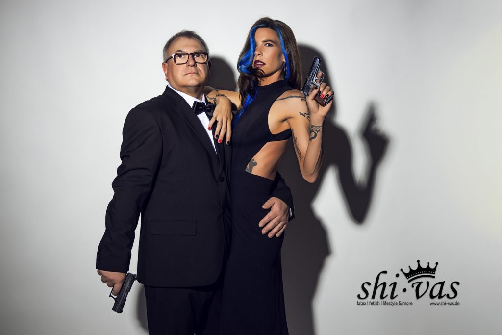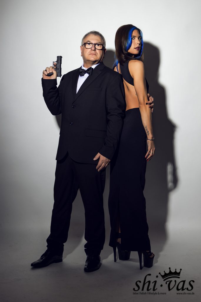 Mario hatte zwei Ideen zu unserem gemeinsamen Shooting mitgebracht … die erste Idee setzten wir gleich im ersten Set um: so ein bisschen Agent 007-like … Jimmy Bondy, der kleine Bruder von James Bond … und das Bondy-Girl Coco! 😜