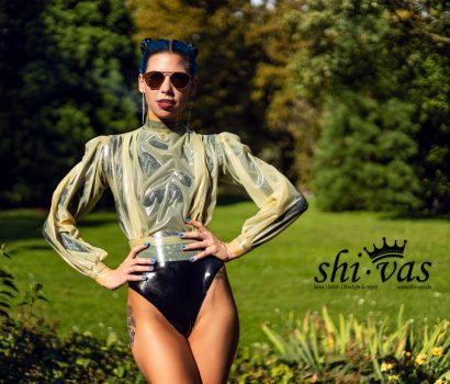 Das ist doch mal ein geiles Latex-Outfit, oder? Und wer hats gemacht? Richtig – Miss Grey Latexfashion! Ein weiteres, wunderbares Latex-Outfit aus ihrer Werkstatt. Ich liebe die hautenge Leggings … die Farbe … den Schnitt … aber der Oberknaller ist …