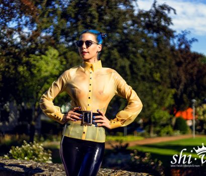 Ein bisschen Eigenwerbung darf auch am Pool sein. Wie glücklich waren wir deshalb, als Miss Grey Latexfashion uns seinerzeit diese speziell für uns angefertigten Latex-Oberteile mitbrachte. Micha hatte dann die Idee, dass man die Latex-Oberteile auch perfekt als swimwear „missbrauchen“ …