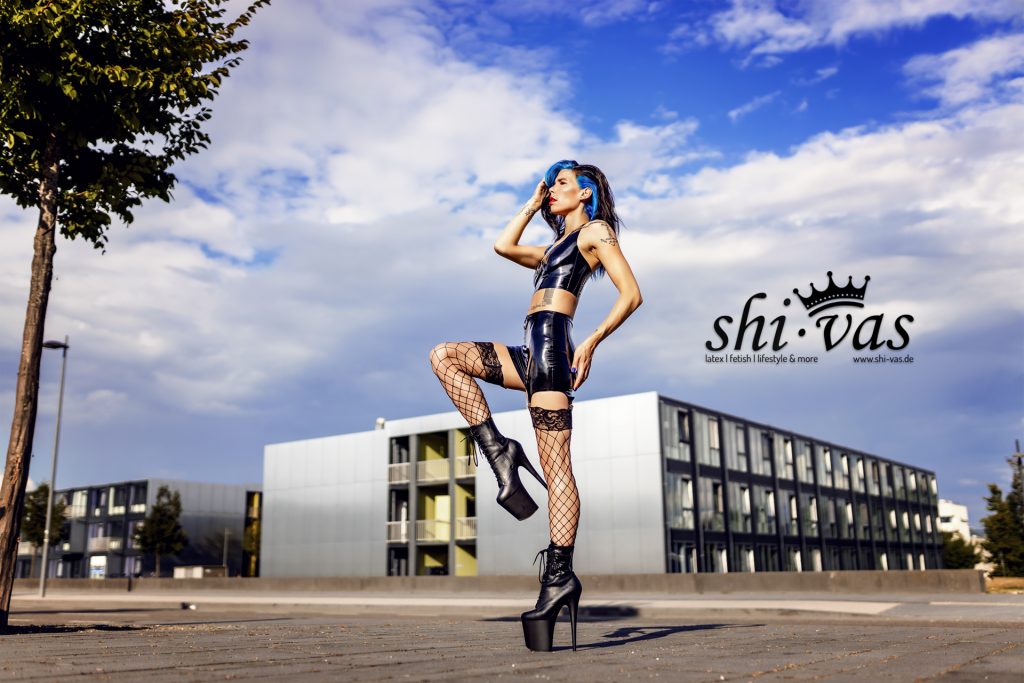 An diesem Latex-Outfit liebe ich vorallem den ultraknappen Latex-Minirock mit den angesetzten Strapsen! Der macht das Outfit in meinen Augen besonders sexy, oder? Andererseits ist das gesamte Outfit megaheiss! … jedenfalls waren die Bewohner des im Hintergrund befindlichen Wohnblocks begeistert von dem Anblick, den ich ihnen da direkt vor der Haustüre geboten habe. 😎😁 Ok … das waren in der Hauptsache Studenten … Männer halt … aber das will „frau“ doch, oder? Den Männern gefallen! 😉❤️