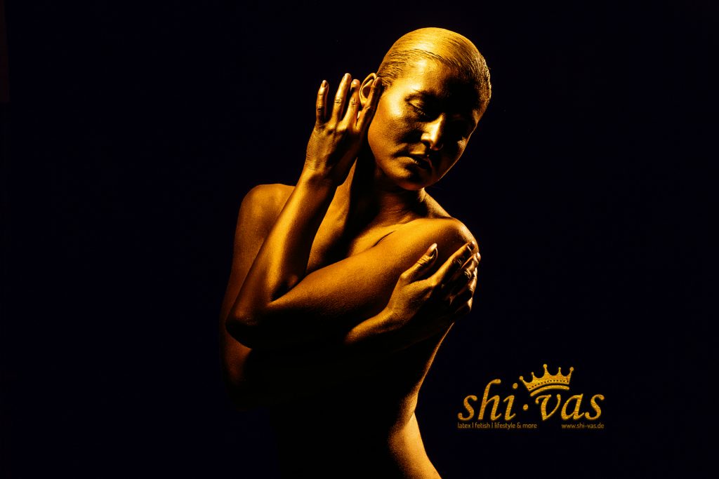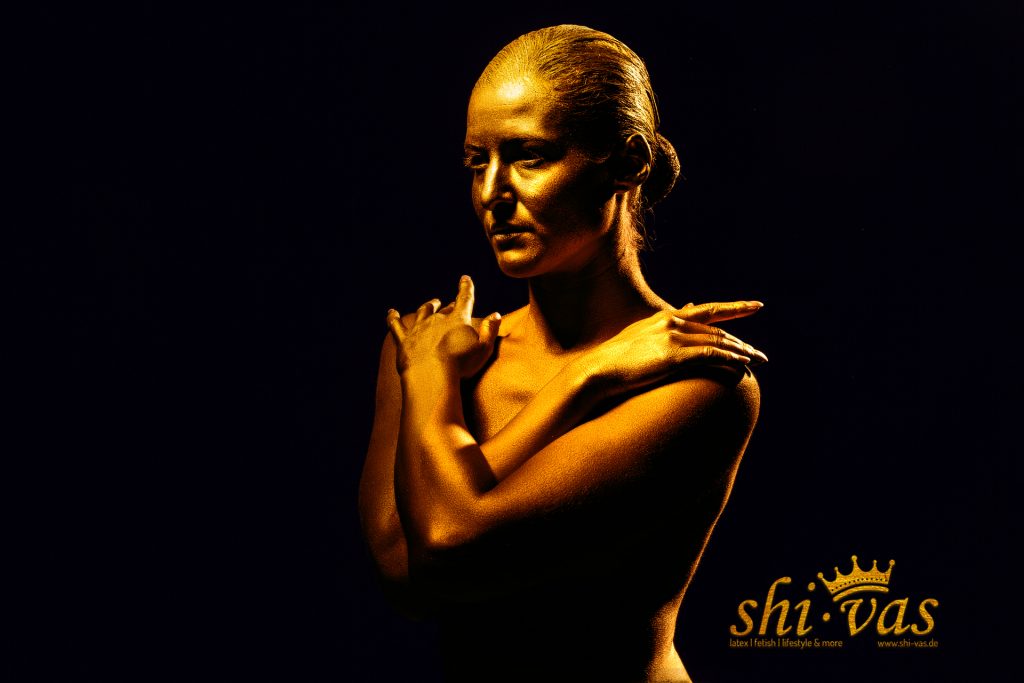 Goldenes Bodypainting ist so eine Sache. Es verzeiht nichts. Kein Lichtfehler, kein unentschlossener Pinselstrich, keine halbe Haltung. Und genau da kommt Lina ins Spiel. Ihre Linien sind klar, ihr Körper spricht eine Sprache, die irgendwo zwischen Skulptur und Bewegung liegt. Das Gold legt sich nicht einfach auf die Haut, es folgt ihr. Jede Pose wirkt, als hätte sie vorher kurz überlegt, ob sie Kunst oder Provokation sein will – und sich dann für beides entschieden.